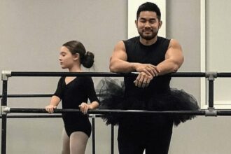 Ông bố cơ bắp gốc Việt trở thành “nam thần” của các mẹ khi mặc váy xòe múa ballet cùng con gái