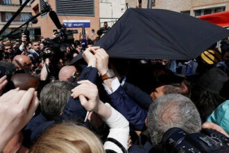 Chiếc ô bảo vệ Tổng thống Pháp khi bị ném cà chua