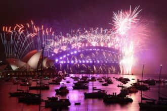 Pháo hoa năm mới rực sáng bên cầu cảng Sydney