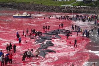Hãi hùng cảnh tàn sát cá voi, nước biển chuyển màu máu