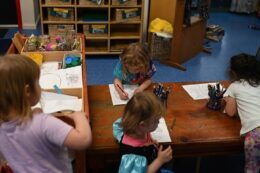 Tóm lại, mọi chuyện diễn ra đều quá bình yên, cảm giác các em đến chỉ để vui chơi, không để học. Các em mạnh dạn thì hòa vào nhau chơi chung. Các em nhút nhát thì ngồi yên vị bên bàn, bố mẹ ngồi cạnh vỗ về, động viên.
