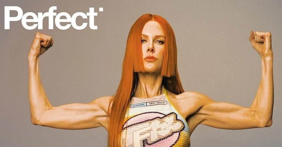 Nicole Kidman gồng tay, khoe cơ bắp khi làm mẫu cho tạp chí Perfect.