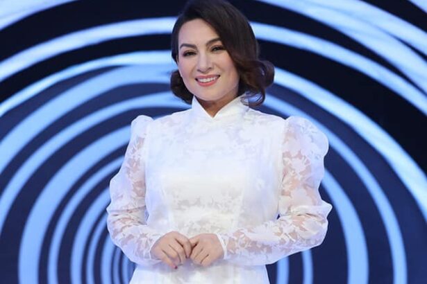 Những chiếc váy màu be tôn lên vóc dáng mảnh mai của cặp đôi.