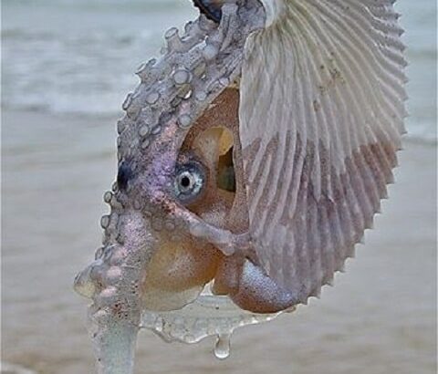 Sinh vật kỳ lạ thực chất là một loài động vật quý hiếm thường được biết đến với tên gọi Argonaut và có họ hàng với bạch tuộc.