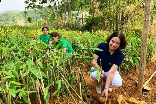 Đoàn cũng đến thăm Dự án Sinh kế Nông nghiệp Công Nghệ Cao (TEAL) tại huyện Mai Sơn, do tổ chức CARE Quốc tế thực hiện nhằm hỗ trợ phụ nữ dân tộc thiểu số sản xuất đặc sản cà phê, kết nối họ với các thị trường cao cấp và đã giúp nâng cao vị thế kinh tế cho phụ nữ một cách rộng rãi.