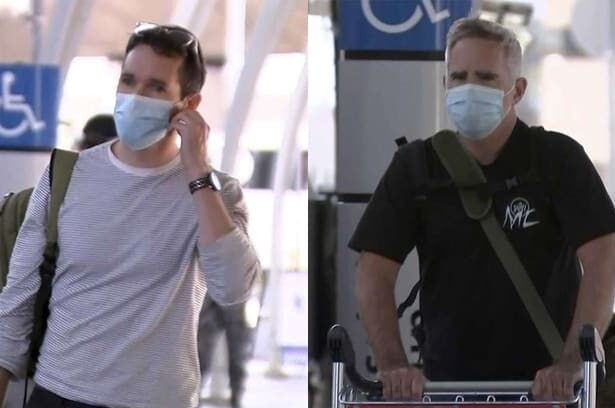 Phóng viên Bill Birtles (trái) và Michael Smith tại sân bay ở Sydney, Úc, sáng 8/9. Ảnh: AP.