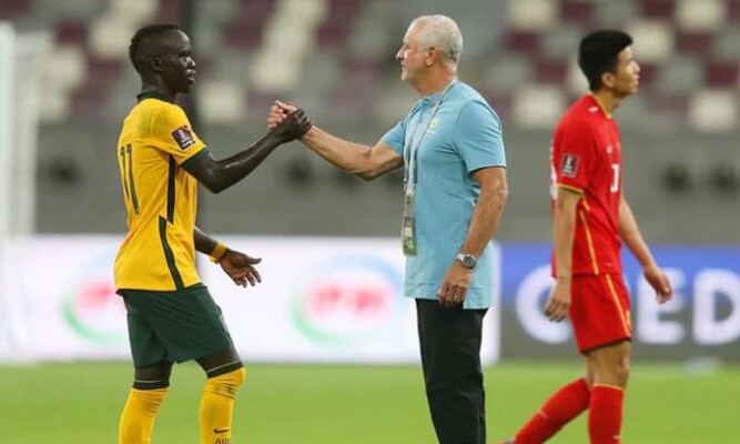Úc dẫn đầu bảng B sau khi đánh bại Trung Quốc 3-0 trong trận ra quân, trên sân trung lập ở Qatar. Đây là chiến thắng thứ chín liên tiếp của đội bóng xứ chuột túi gần đây.