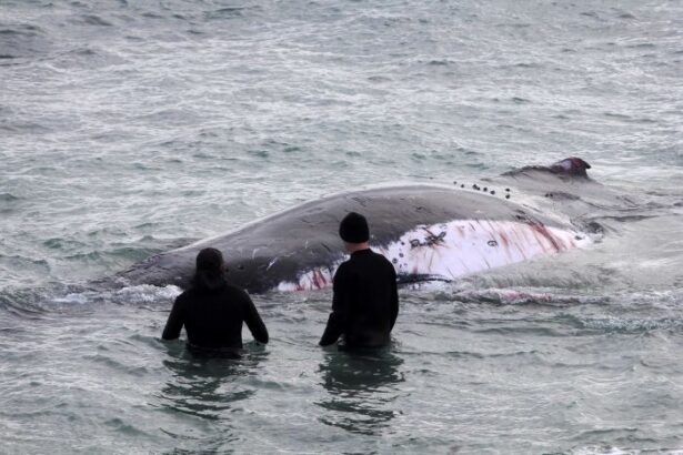 Những con cá voi được giải cứu có gắn thẻ chip trên mình để các cơ quan chuyên môn theo dõi.