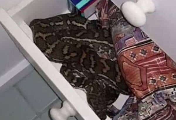 Tin Tức Nước Úc – Con trăn đã kiếm được một nơi ẩn nấp khá ấm cúng trong phòng tắm lạnh lẽo – bên trong ngăn kéo của tủ áo quần, Daily Mail đưa tin.