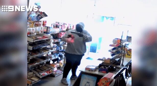 Máy quay CCTV đã thu được cảnh người đàn ông vung mã tấu loạn xạ, giận dữ chém vào những sợi dây điện trước khi lấy cắp máy tính tiền và chuồn đi. Trong tiệm cà phê lúc vụ cướp xảy ra có ba cha con ngồi cách đó chỉ vài mét khi tên cướp xông vào. May mắn là không có ai bị thương.