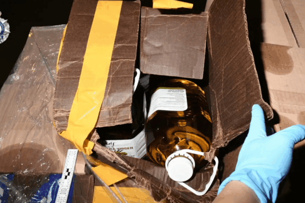 Cảnh sát vừa thu giữ một lô hàng hơn 200kg methamphetamine dạng lỏng được để lẫn giữa các chai dầu ô liu trong thùng hàng một chiếc xe tải ở Fairfield.