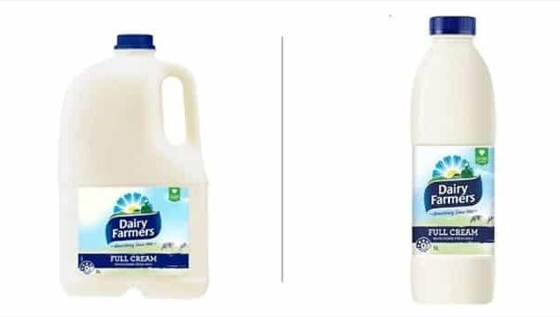 Sữa Dairy Farmer nguyên kem (full cream) bình 1 lít và 3 lít đang được đem khỏi kệ hàng siêu thị vì khả năng nghi ngờ nhiễm khuẩn E. coli.