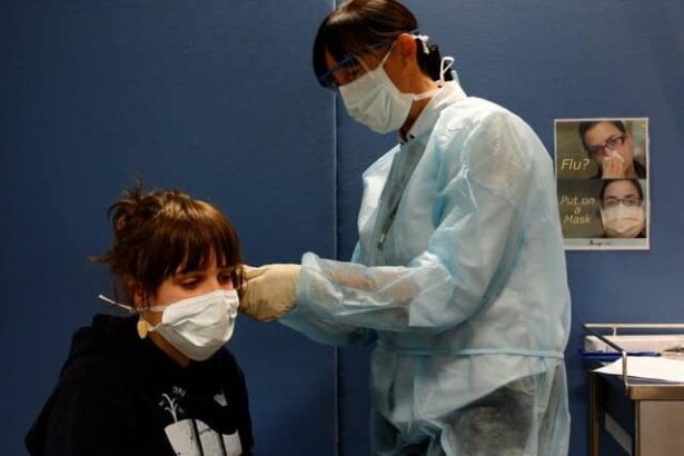 Nhân viên y tế lấy mẫu xét nghiệm nCoV tại Melbourne, cuối tháng 6. Ảnh: Reuters.