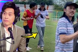 Max đang thể hiện kỹ thuật bắt cá mập bằng tay không của mình.