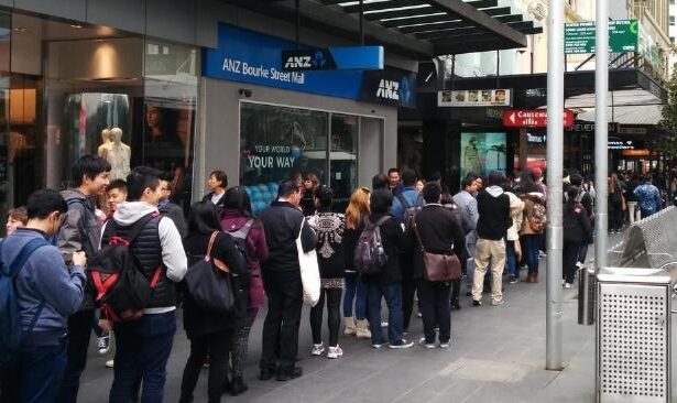 Mọi người xếp hàng dài Bourke St cho kem miễn phí tại Ben and Jerry’s. Ảnh: Daniel Bowen / Twitter