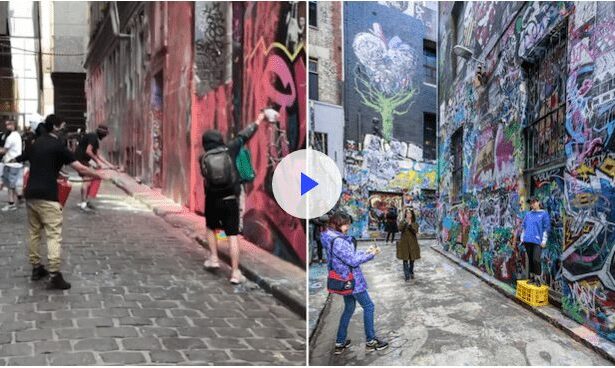 Theo đó, con phố Hosier Lane, điểm tham quan nghệ thuật trong khu vực trung tâm thành phố, đã phủ đầy những vệt sơn nguệch ngoạc vào cuối tuần qua.
