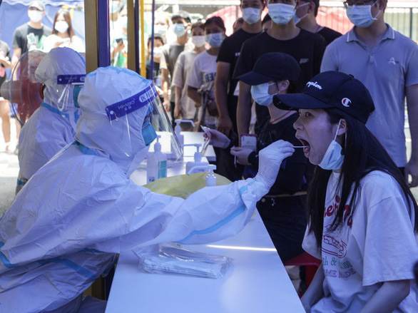 Một người dân được xét nghiệm axit nucleic để tìm coronavirus Covid-19 ở Quảng Châu, tỉnh Quảng Đông, miền nam Trung Quốc. Ảnh: insider.com.
