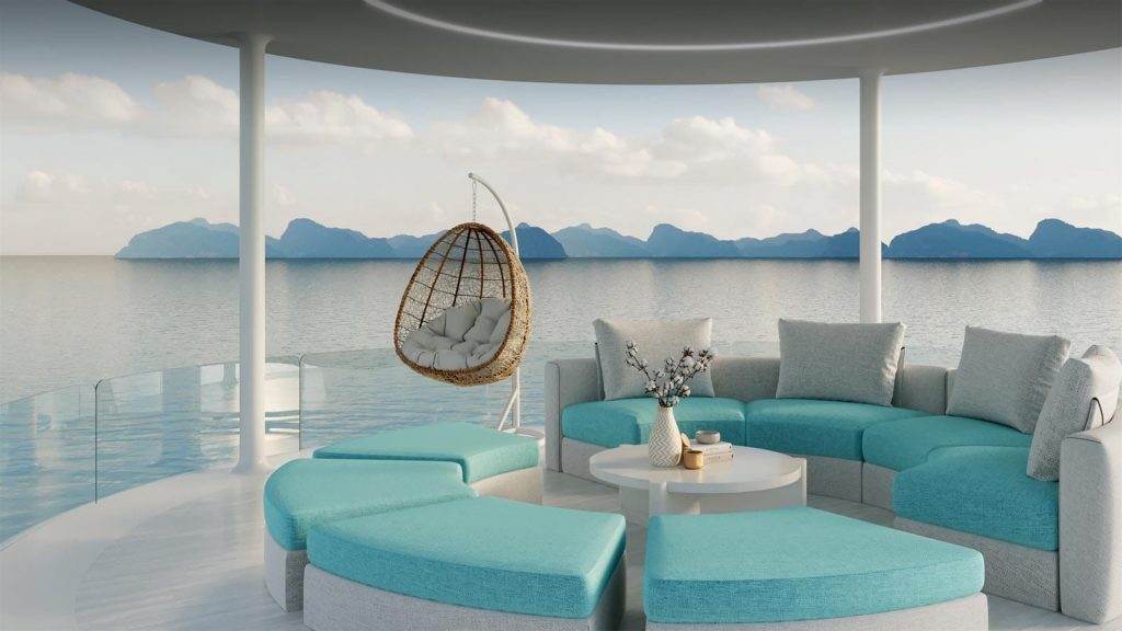 Với tổng diện tích sàn lên tới 77 mét vuông cho không gian nội thất cùng diện tích cửa sổ là 53 mét vuông, mỗi căn Seapods có phần ban công ấn tượng mang lại cái nhìn toàn cảnh hùng vĩ và trải nghiệm sống động ở đại dương.