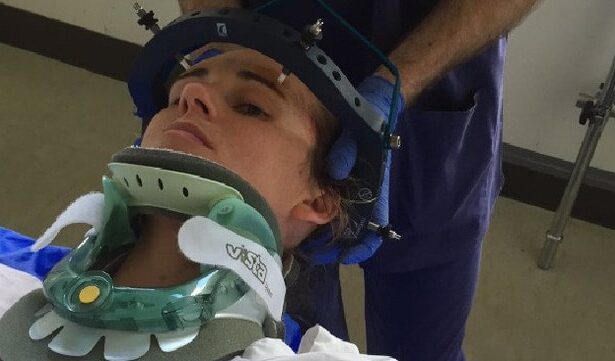 Monique phải đặt thiết bị cố định cổ để ngăn chặn mọi hoạt động vùng này cho xương lành. Sau 14 tuần cô hoàn toàn bình phục.