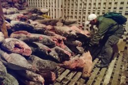 “Chúng tôi bắt được con cá sấu này khi nó mò vào cảng gần đó để tìm kiếm thức ăn”, Hunt nói. Nhóm thợ săn phải rất vất vả mới tóm gọn được con cá sấu khổng lồ và đưa nó lên bờ.
