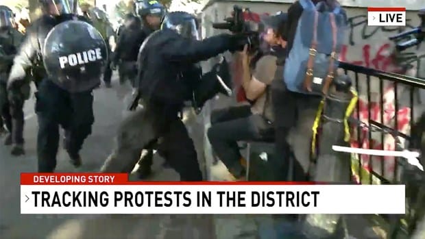 Phóng viên và quay phim của kênh truyền hình 7News của Úc tại Mỹ đã bị cảnh sát dùng khiên và gậy tấn công khi đưa tin về cuộc biểu tình bên ngoài Nhà Trắng.