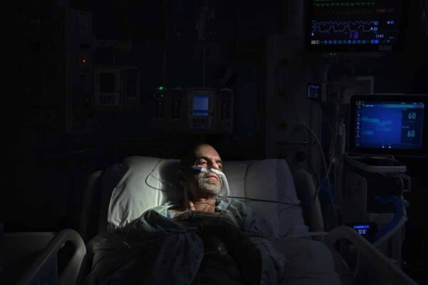 Trong ảnh là bệnh nhân 53 tuổi chỉ có thể thở thông qua sự hỗ trợ của máy móc.