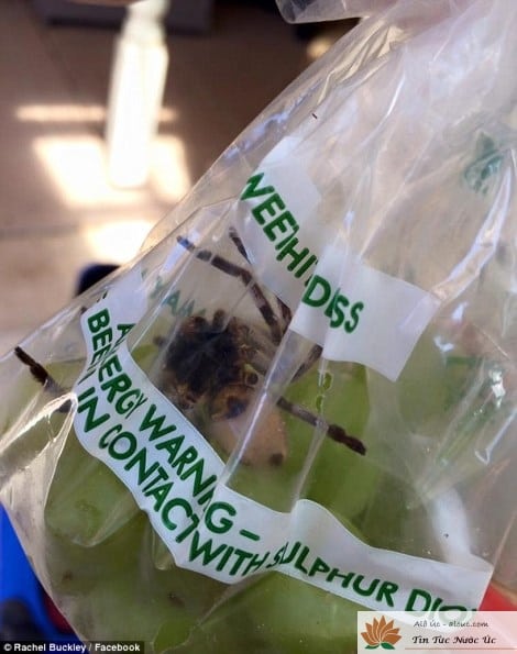 Khi Rachael Buckley mở túi nho xanh mua từ trung tâm mua sắm Woolworths ở Melbourne, nước Úc, cô đã vô cùng kinh ngạc. Trong túi nho có một chú nhện Hunstman khổng lồ đang mang thai.