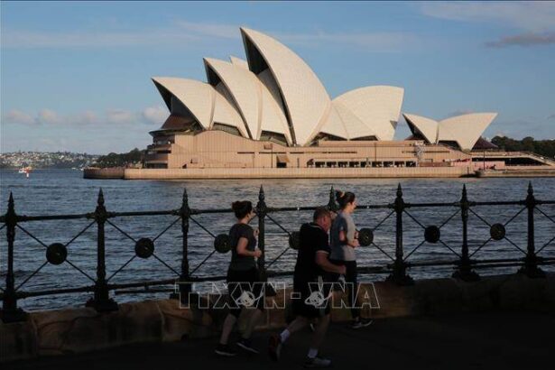 Thu hoạch lúa mì tại Inverleigh, cách thành phố Melbourne, Úc, khoảng 100 km. Ảnh: AFP/TTXVN.
