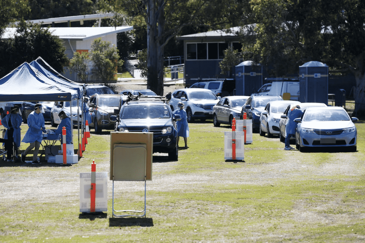 Người dân bang Queensland đi xét nghiệm Covid-19 tại một điểm xét nghiệm mới được lập ở vùng dịch. Nguồn: AAP