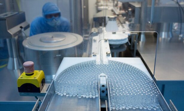 Nhân viên công ty CSL thu nhặt thành phẩm trên dây chuyền sản xuất vaccine tại Melbourne, Úc. Ảnh tư liệu: AFP/TTXVN.