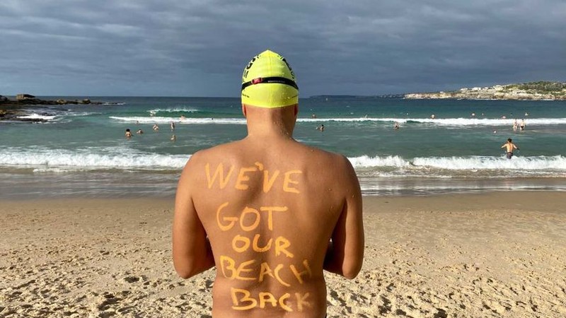 | Một người dân bang New South Wales, Úc rất vui mừng khi chính quyền dỡ bỏ lệnh đóng cửa các bãi biển. Ảnh: ABC News |