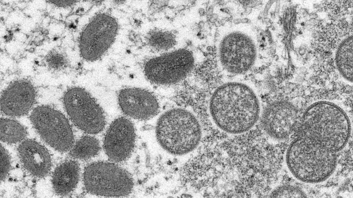 Hình ảnh virus đậu mùa khỉ trưởng thành (trái) và chưa trưởng thành (phải). Nguồn: AP.