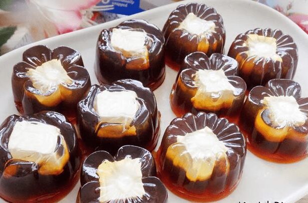 Sau đó cho khuôn thạch vào ngăn mát tủ lạnh vài tiếng, để thạch đông trước khi thưởng thức.