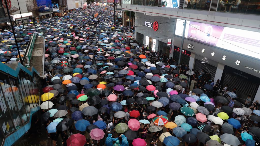 Các cuộc biểu tình bùng ra ở Hong Kong hồi đầu tháng Sáu về dự luật dẫn độ mà nay đã bị hủy bỏ.