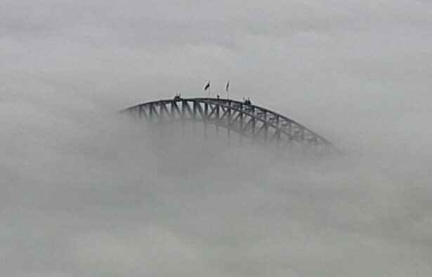 Nhìn từ trên cao, trung tâm Sydney như lọt thỏm trong một chiếc chăn bông trắng muốt như tơ, chỉ để lộ các chóp và phần tháp của các tòa nhà cao tầng. Riêng đối với cây cầu cảng Sydney bình thường thì to lớn, hoành tráng đến thế, vậy mà dưới ảnh hưởng của hiện tượng thời tiết bất chợt như bị nuốt trọn, chỉ nhìn thấy một phần đỉnh trồi lên khỏi đám sương mù lãng đãng.